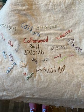 Posted - Dec 07 2025 : 7:02:00 PM Yesterday and today, I have been working on a “gift” for my daughter (1st grade teacher) from her class kiddos. I will turn it into a pillow and the kiddos can give it to her on their last day before break. I used a light board to trace their handwriting from paper to fabric.