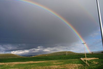 This was a full rainbow and we could see both ends! It was amazing to say the least. Think we were in Wyoming. Taken on our trip last Spring.