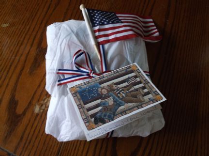 Julie sent me so many nice things and she just told me that the flag is a scarf that I can wear tomorrow. It is so soft and gauzy it is just beautiful!