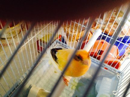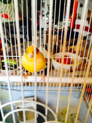 Please meet Doc, we named him Doc after our Dachunds, he is a beautiful yellow, pink, peach white and wears a black mask. I have had him only a week but he is starting to sing for me.