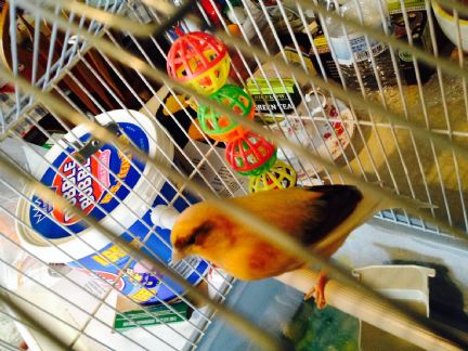 Sure wish I could get better pictures it is so hard to see him clearly and his beautiful colors through the cage.