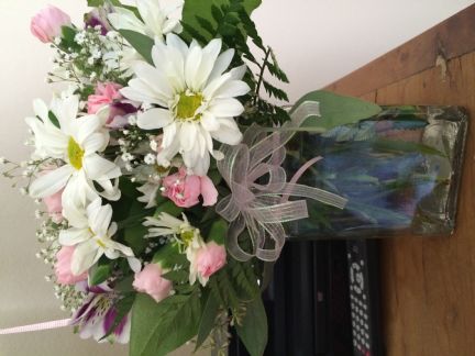 I am attaching a couple of photos...One of my beautiful, healthy girl, a couple photos of our lifesaving critical care helicopter transport team and a pic of the beautiful flowers sent by sweet Debbie that really brightened Shea's day.