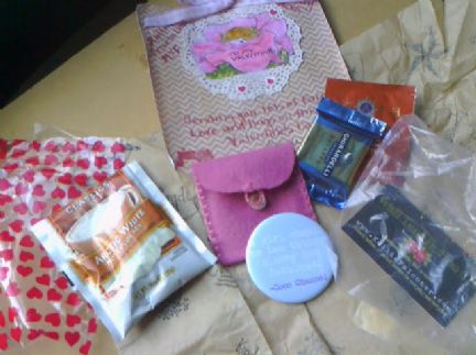 I also had a wonderful Valentine treat from my Secret Valentine Winnie, the button mirror and envelope for it, how neat and the candy and tea and chocolate, yum.