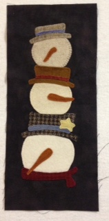 It is made with cotton and wool. I enjoy working with hand dyed wool, no edges to turn under. There's a new design for each month. I'm planning on making all of them (I think ) and use as shoppe samples. Presently working on the January one. Will post pictures when completed. They really are all so cute and quick to make (meas 7.5" x 13.5"). There's something about finishing a project that I find so motivating. I always try to get a quick one done in between large projects.