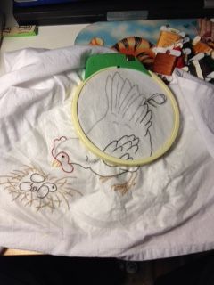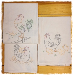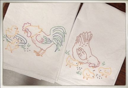 It is slowly coming up to my bedtime, so I may just continue stitching my last chicken towels!