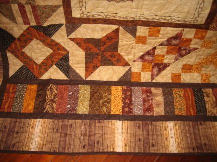 Linda, Your quilt is gorgeous! Love all the browns and pretty blocks! You are inspiring me to get busy and finish up three quilts that I have started :)! Really not much to do with any of them, except "Do it"! Thanks for the inspiration Hugs, Ruth