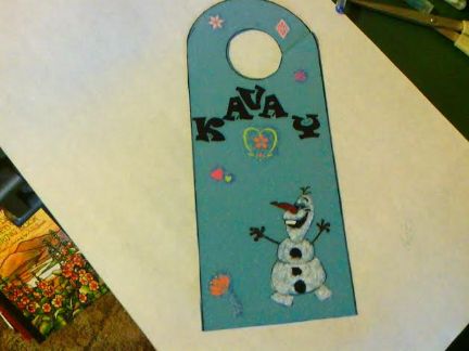 Thank you very much, This one is for an 8 or 9 year old who is very active so I tried to incorporate a lot of it in the card so she likes soccer, improve dancing, The movie frozen and other things but I put in an improvisational dancer I traced onto some plastic from some card stock I had and then found a soccer ball in one of my Zentangle books and it was some other kind of design but just like a soccer ball and traced it onto the plastic, which I was going to shrink but changed my mind then I found some card stock that had a winter scene and went with that for the front of the card. I made a door hanger I traced from a door hanger that I found on my door from the cable company and traced that into the plastic and drew Olaf from frozen and put some flocking on him. I then backed it with a glittered paper. It was such an odd big size I had to make an envelope for it. That wasn't easy finding something to fit it.