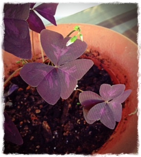 I was looking at my Red Shamrock plant, admiring it's tenacity. I had been ignoring it for a while. Guess what I found? Do you see what I see on the bottom right?