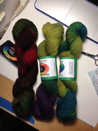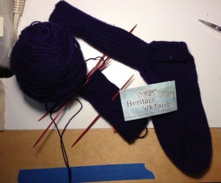 When I knit socks I like to use Heritage Silk Paints (85% merino super wash wool / 15% mulberry silk) from Cascade and use the pattern from a prior post. It's a very fine yarn and takes a while to knit a sock!