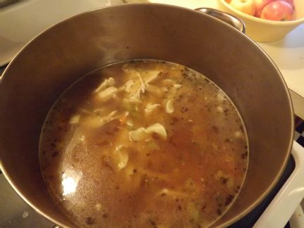 My MIL always makes a turkey soup after dinner and the kids just gobble it up (as if they didn't have enough to eat). She does make a mean turkey soup. I/we figured out her secret, roasting the carcass before making the soup. My dh (he's the cook by the way, I love to cook but I pick my arguments lol ) roast the chicken carcass also and makes a mean chicken soup. It really brings out the flavour.