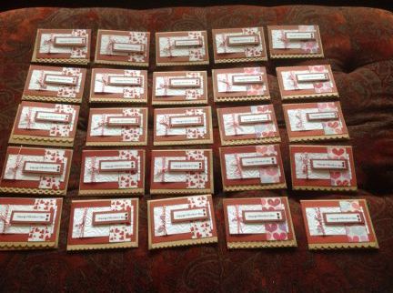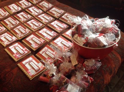 I just finished 25 handmade cards and treat bags for my bible study! Working on a Valentine's Day banner and tablerunner today.