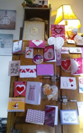 I so enjoyed every Valentine I 're dived. Some from Scattered Prarie friends, some from the card swap and even one from my husband that came with two dozen beautiful rose buds in beautiful colors. |