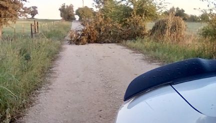 Well from the looks of things we did have a twister visit last night...actually about 2am. Funny thing it went right down through the oak trees beside our lane. Baylee was trying to get to the hospital when she found the lane was blocked by big hunks of a tree. She called her dad. So when my son got to her they could not see the debris on down the lane. He told her to drive in the grass and try to go around the first big limbs. That was when they got a glimpse of the other three trees on down toward the gate. I thought lightening strike, but he said no. The debris was too far from the trees. And since lightening has struck two trees near the horse barn, he knows. |