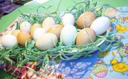 | I have used beet juice to dye them. But never tried anything else. I don't get white eggs from my girls only brown. Although some are very light in color so I may be able to try it with them. I love your little display Winnie. The muted colors are pretty too! |