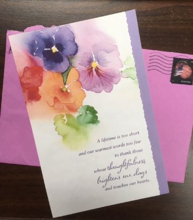 I also send thank yous for special occasion and gift items received, and try my best to keep up with that. I'm at the point right now where I've lost my list and can't remember who I've sent and who needs a thank you to be sent. So - if I've forgotten one of you, I'm sorry. And in case you get a second thank you, that's why.