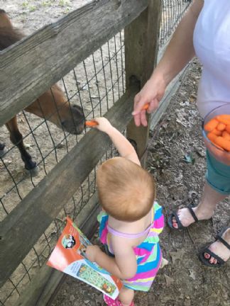 We were blessed with 2 cooler days! So we fed our neighbor's ponies 2 times yesterday!! Lily June loves to feed them. Before we know it she will be starting to school, I'm enjoying every second I can with her!!