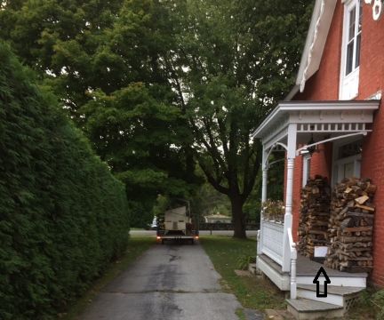 Oh LOOK! It's Ruth's package tucked in between the stack of fire wood! Ah ... a happy apple package!