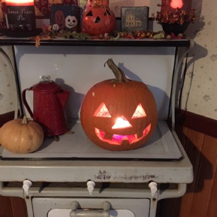 | Winnie you have an old cook stove, similar to the one we had when I was four years old. Cute Jack o lantern. |