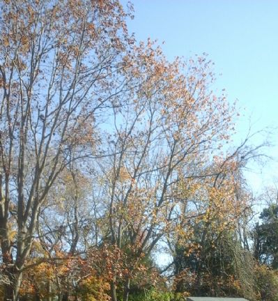 Here you go Marilyn. You can see that some of the trees are starting to look fairly bare and some still have lots of green. My brother in law went to upstate NY this past weekend and he said the trees are quite bare there now. We are 5 hours south of my hometown in NY. So not far but it can make quite a difference in the weather patterns.