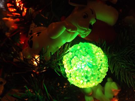 I have fond memories of these General Electric Ice Bulbs. There was a GE factory in Memphis for many years. My Mom's friend worked there and they got a huge discount. She gave my mom enough lights to cover the whole outside of her house and the Ice lights for the tree. I was about 8 yrs old. I found these on Ebay for Lily June's Puppy tree. She loves them, she names all the colors!