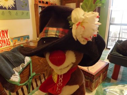 WE gotta get snow!! Thank you Linda from me and Lily june!! This is so cute! I have never seen one before and she made it all!! Rudolph modeled the hat for us! A real corncob pipe and wooden carrot, nose, and eyes and buttons! A soft warm scarf!
