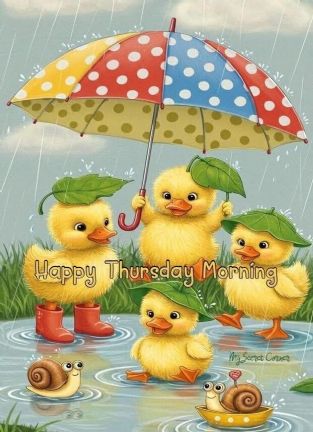 | Those are adorable little ducks! It's not doing anything here except being overcast but there is rain in the forecast. I may need to borrow that cute umbrella from the ducks! |