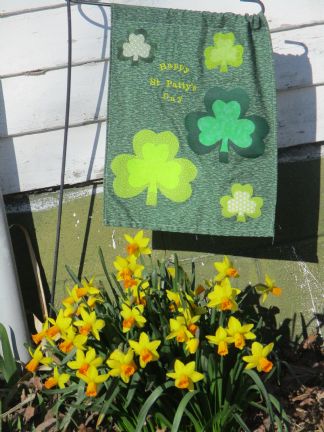 | Oh those daffodils are so pretty with the two colors. The St. Paddy’s Flag is perfect. |