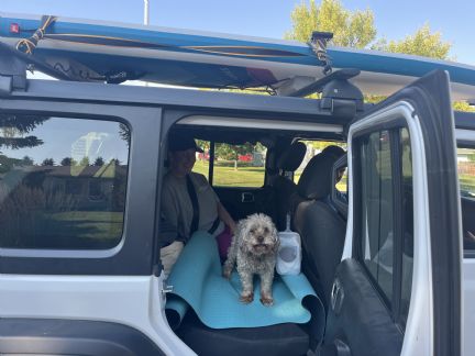 Debbie-Our sweet mini Labradoodle Jubilee Chesapeake of Chakola-Chessie for short. She is 16 and sadly, I think this may have been her last camping trip. Yes, Starbuck's just feels like a special treat and I had a gift card :0)