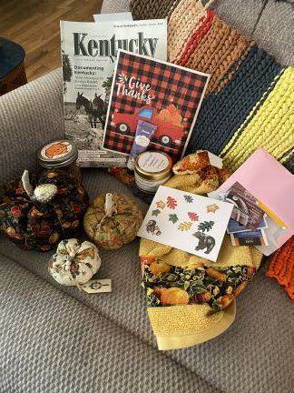 Thank you for my box of goodies!! We returned home from vacation yesterday to the box you sent!! :) Thank you for all the goodies!! :) I love it all! The picture is missing the pumpkin spice caramel candies…hubbies snagged those!! In the jar that’s hiding is pumpkin pies spice! :) |