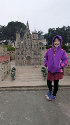 But first, I insisted we stop at a little theme park that had tiny replicas of famous Catalunya landmarks like Sagrada Familia (which we eventually visited) and Cathedral (maybe next time). Fallon liked pushing buttons and seeing little model trains run around the exhibits. There was even one that simulated fire fighters putting out a real fire flare.