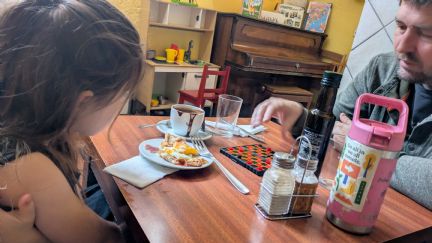 We also stopped at La Nena's ("Grandma's") to dip churros into super thick chocolate. Jens loved it, Fallon not so much. Incidentally, these little magnetic board games are wonderful to keep kids busy when they are getting restive during waits. I am glad we packed one, but maybe not the other 6 or 7 in the set.