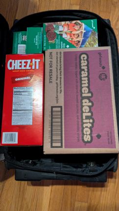 Our first stop was to visit Fallon's ex-pat uncle. He said his wife missed Cheez-its which were not easily available in Spain, so we found a giant box at Costco. Fallon's granny heard it was Girl Scout cookie season and urged us to restock him in those as well. This worked out great because it left a lot of room for souvenirs, messy repacking, and eventually consolidating our carryon so we could mule Grand Dude's guitar home for him as personal item.