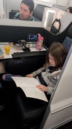 Fallon's other Grand Dad used to work for an airline and helped us with tickets. They were in a nicer part of the plane than we would have splurged for ourselves, but helped a bit with avoiding jet lag from the 9 hour time zone difference...