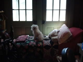Posted - May 19 2009 : 1:01:42 PM so good to hear from you farmgirls.i am trying to get back with the program and right now my plan is to blog at least every monday,so if you didnt check out yesterdays entry please do. it really tickles me when folks leave a comment, thanks jonni. i hope today, or tonite to check out violets blog and yours too stephani. before the breast cancer i had developed more of a habit of checking out the blogs, i loved yours steph as well as so many others here nancy jo, aunt jenny, well the list just goes on and on, i also love marian/dutchys. she is definitely our pink farmgirl. everytime i need a chuckle i just go back to her post where she is dressed up like a nun.heheheheh. the first pic is of clooney in our tiny computer room, it is cozy for sure.