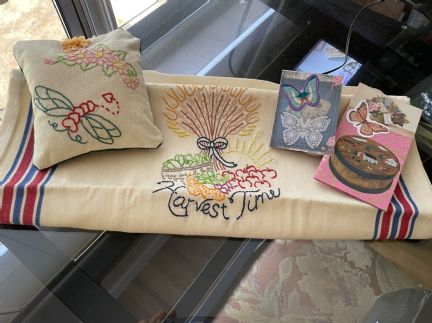 Posted - Sep 07 2022 : 10:24:31 AM Thank you so much Nancy Jo for the beautiful stitched Harvest Time Towel and little Bee pillow as well as two little books too. Your embroidery is Amazing and I will treasure these wonderful pieces. Thank you again.