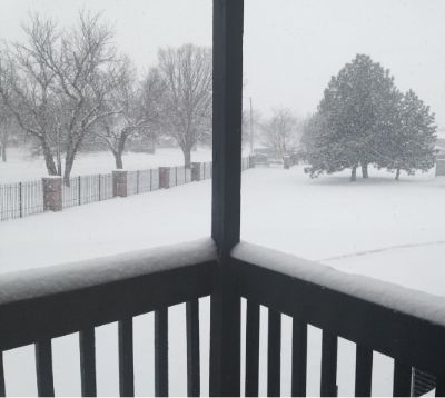At her work, she had to shovel a path to the dumpster so they could get the packing boxes unloaded!