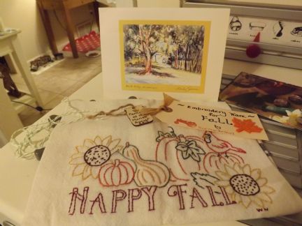 Posted - Aug 13 2014 : 12:48:14 PM Winnie! Thank you so much for my special card to remember my FGOTM! I love the painting on the front of the card! I love the dishtowel. I adore handmade embroidery!! I could not wait until September to hang it up!