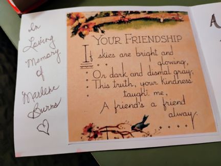 Posted - Sep 17 2025 : 2:19:36 PM Thank you so much for your lovely card Karen and the poem to honor Marlene. It gave goosebumps as it was the type of poem she would have added to her card. Thank you for the memory of her.