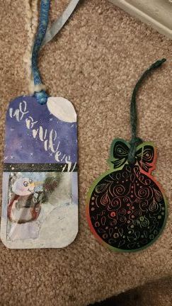 The swap goes like this: Make TWO TAGS for your partner. They can be any medium you chose; cardstock, fabric, metal, plastic, wood, etc. Decorate the fronts as fancy as you want, but leave space on the back for your partner to write "To and From" on. And please put on the back "Made by" . . .(your name) and the year 2025. Size can vary, not too small and not too large. The ones I make are approximately 2 1/2 X 4 1/2 inches.