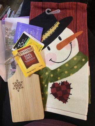 Thanks, Denise for my adorable snowman towel!! Too cute. Thanks for the extra tucks, too, the cutting board and tea! :)
