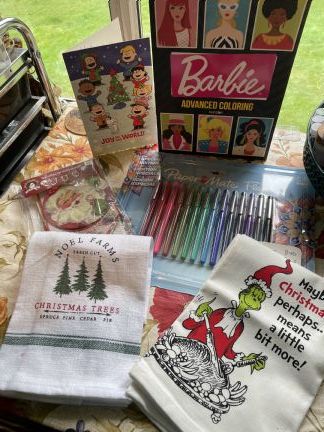 Thank you Connie Sue and Lily June for the lovely and cute tea towels. The Grinch one is awesome. Thank you too for the Barbie color books and markers to keep me busy while I recuperate from my Surgery. Love the Santa Banner and will have my guys hang it on the mantle this weekend. Always happy to have you as my partner Connie Sue. Happy Thanksgiving to all.