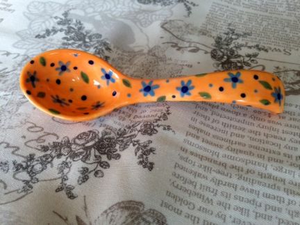 Look, look, look what was in my mailbox yesterday: this oh-so-cute ceramic spoon courtesy of Danielle. She says she manufactures ceramics and painted this little gem just for me! Thank you so much Danielle, I absolutely love it.