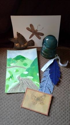 I must appologize to the wonderful sister who sent me Mail Art for March. Michelle is an awesome artist. When I opened up the box that she sent it was just one layer after another of beauty. She has been studying fiber arts and surface design. She used those skills to tell a story for me about her world and her future. Such a lovely gift. I also love the insulater. My step mother has a collection and I am always a little jealous when I see it so now I have a start for my own. I also love birds, bugs and anything outdoors so everythng you sent is greatly appreciated. Anyone who gets you as a partner in the future is very lucky. |