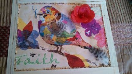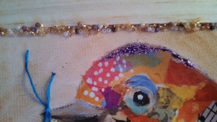 Posted - Apr 20 2016 : 8:57:50 PM So glad your pkg finally made it cross the border!! It was such a cute lil bird before I even started... but it was one of those things that just took on a life of its own. Originally I wanted to put a frame on the back side and fake curtains on the front so it could be your "window" anyplace you needed a view of nature. But there seemed to be no way to add those without blocking the really cute details on Mr Birdy. Did you notice his super chic purple mohawk?