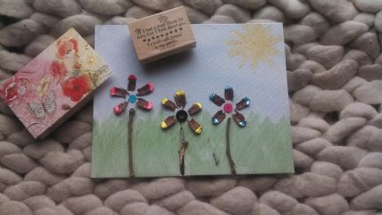 Posted - Jun 19 2016 : 12:20:22 PM Here is the sweet little Mail Art I got for May from Jami. She and her Granddaughter collaborated to make this lovely garden of flowers from pinecone petals. I also received a lovely stamp with a flower quote as well-keeping the flower theme. Great job with innovating, Jami! Thanks much!!! A.jpg?v 46036157)