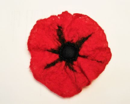 Update: here is a photo of the wonderful wet felted poppy flower Marilou sent. It's about 6" diameter and looks very real! I love how she used the tiny black beads around the center for interest and dimension.