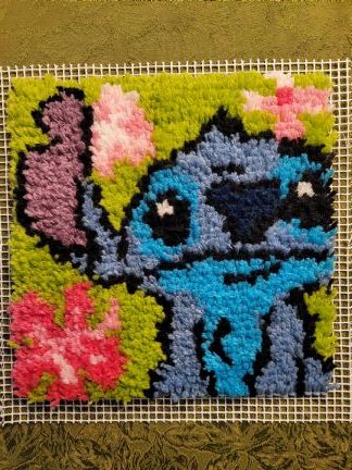 "For the fiber, I chose yarn and to do latch hooking kits. I started this project on our trip to Moscow, Idaho to see MaryJane's Farm. I worked on it during the train trips, in the hotel rooms and finished it at home. It is a gift for a sisterhood friend. Next I will be doing a blanket size lion wall hanging.