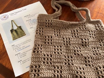 For this merit badge specifically, I made 2 Filet Squares Totes. The main stitches were chains, single & double crochets. This was the first time that I had made something 3 dimensional. I made two totes in order to make up the required 20 hours for this badge."