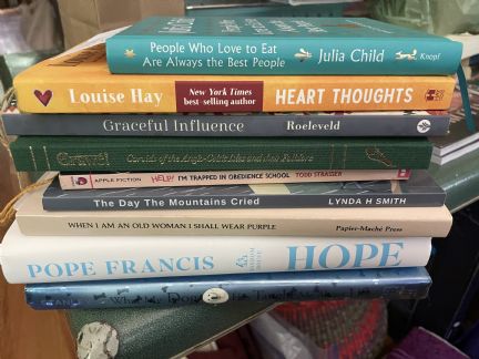 Also here is a picture of just one of my many, many piles of books that I need and want to find time to read. I thought I would have more time when I finally retired but is just not so."
