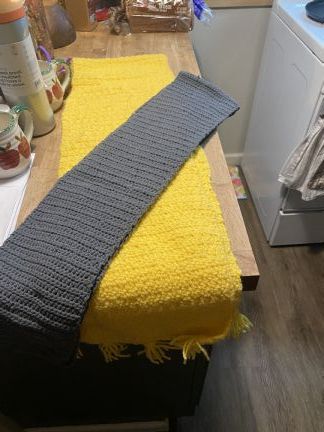 "I learned to crochet many years ago but have not crocheted for at least 25 years. My grandmother taught me when I was in elementary school. I did lots of practicing in order to earn this badge. I made a scarf ... two actually! I didn’t like the way the first one felt to the touch. It has always been a struggle for me to keep the edges straight but I was successful. It took me about 10 hours to complete both scarves.